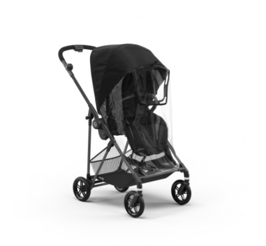 Pentru a proteja eficient impotriva vantului si a ploii, husa de ploaie poate fi atasata la carucioarele din gama Melio.