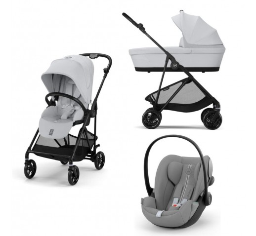 Noul Cybex Melio Carbon 2025 3 in 1 Fog Grey cu landou + Scoica Cloud G Plus i-Size Recline si adaptori