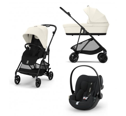 Noul Cybex Melio Carbon 2025 3 in 1 Canvas White cu landou + Scoica Cloud G Plus i-Size Recline si adaptori