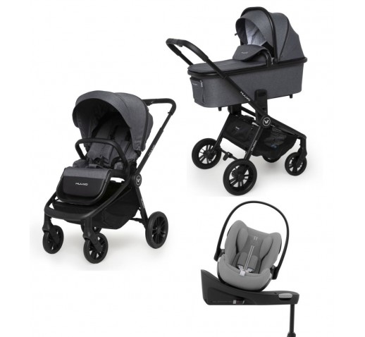 Carucior copii 4 in 1 Muuvo Quick Carbon Graphite cu Cybex Cloud G Plus recline si baza isofix rotativa testata ADAC + adaptori pentru a cupla scoica Cybex pe cadrul caruciorului.