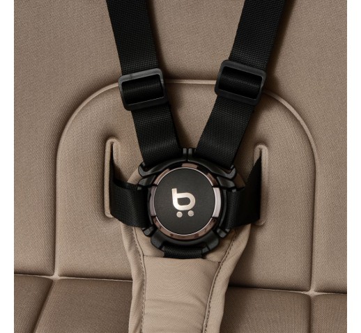 Caruciorul este echipat cu o bara de protectie la 360° din piele perforata, respirabila, facilitand accesul micutului dumneavoastra in scaun. Siguranta este asigurata de un ham cu cinci puncte, cu pernute moi pentru umeri, a caror catarama magnetica permite o fixare rapida si silentioasa.