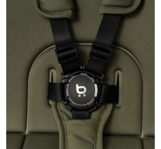 Caruciorul este echipat cu o bara de protectie la 360° din piele perforata, respirabila, facilitand accesul micutului dumneavoastra in scaun. Siguranta este asigurata de un ham cu cinci puncte, cu pernute moi pentru umeri, a caror catarama magnetica permite o fixare rapida si silentioasa.