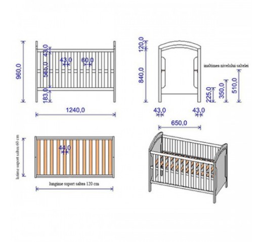 - Suportul pentru saltea este compus din lamele pentru o mai buna ventilare a saltelei.