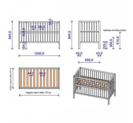 - Suportul pentru saltea este compus din lamele pentru o mai buna ventilare a saltelei.
